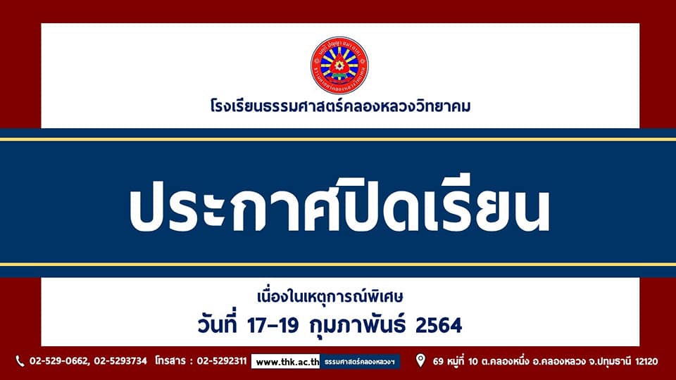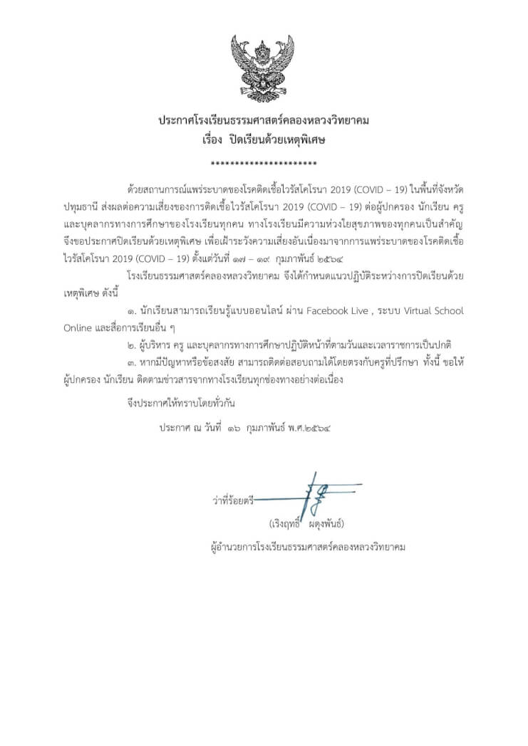 ประกาศด่วน หยุดเรียนกรณีพิเศษ